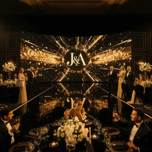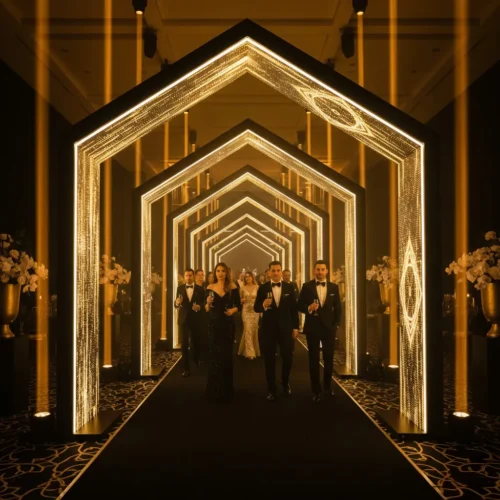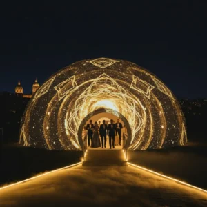 Estructuras decorativas luminosas y sistemas de iluminación inteligente que cambian de color y patrón en tiempo real. Adaptamos la atmósfera a la música y necesidades de su espacio